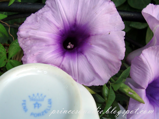 What beautiful flowers both on the tea cups and in the garden!!